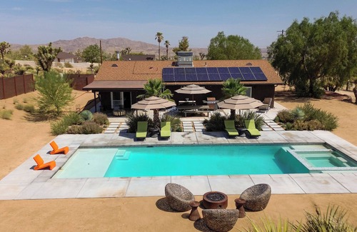 Yes, this Joshua Tree house has a swimming pool. Check the Facility Overview section for details about the pool and other available facilities.
