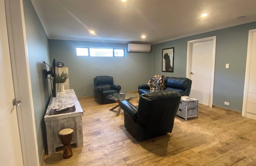 Soft leather sofa with 2 Recliners and large smart TV (access to Netflix, Stan etc) Games and Books. We welcome dogs however there is no boundary fencing.
