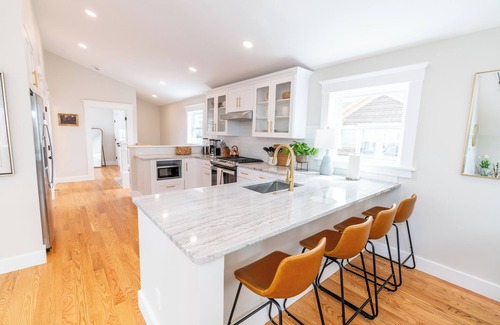 This is a private 3rd floor apartment was JUST renovated in 2024. We have poured our heart and soul into this entire house, sparing no expense so that we can create the best space possible for our guests. This brand new renovation was thoughtfully designed and includes central air conditioning, all new kitchen and bath, hardwood floors, stainless steel appliances, granite counter tops, and a shared gym space. The unit features two bedrooms with queen beds and a living space with a couch that can be used for another guest as needed. There is also an air mattress available upon request.