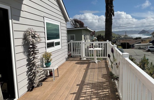Escape to this adorable house along the coast between Morro Bay and Cayucos. Morro Strand beaches are a 5-10 minute walk and hiking trails to Hang Glider Hill start a couple blocks away. This cute house features an open floor plan, with a beautiful kitchen island that is central to the dining area and living room. The kitchen is stocked with all the cookware and dishes needed for entertaining a small group of family or friends on their special getaway.. There are two cozy bedrooms, each with a very comfortable queen bed and quality bedding. The small bathroom is unique with vintage tropical tile and a rain shower head. There is free wifi and a 55” Smart TV in the living room with an electric fireplace for chilly nights or foggy days. BBQ on the front deck or sit and relax in the private back garden. It is a very quiet neighborhood, sounds carry, and the 10 pm noise ordinance is strictly enforced. Please no outside conversations or activities after 10 pm.