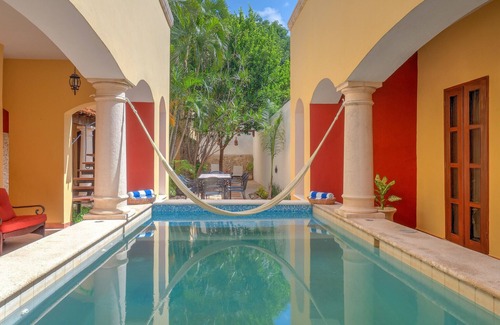 Casa El Remanso three blocks from Santa Lucia and meters from the English Library. Large colonial house with high ceilings in its original construction, recently remodeled. Reception room with large library, warmly decorated living room with smart TV 50 '. Great full equipped kitchen for informal meals in the garden or formal in the glamorous dining room. Suites with private bathroom, quality sheets and pillows, hair dryer and organic bath amenities. Full bathroom in front of the pool. Full laundry room with washer and dryer. Big terrace to enjoy the nights of the warm Merida. Excellent lighting inside and outside.