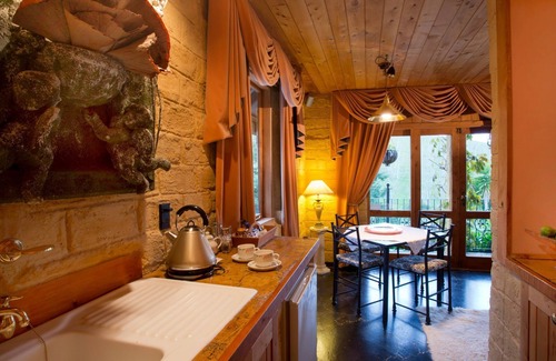 The Mudcastle is the home of Glenys Johnston, who extends a warm welcome to her guests. The castle was hand-built quite literally from the ground up over many years. Each brick and floor tile has been crafted using local materials and each leadlight window has been created specifically for the space in which it sits.