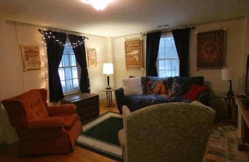 A farm stay like no other! The future is the past and the past is the future with STEAMPUNK details that delight at every turn. Feed the goats, walk the trails, meet an alien. A complete apartment great for longer stays. Enjoy the imagined history of this 1825 farm house. Enjoy New England without spending days driving. Come visit a simpler time where nature is just outside your door and ET is sharing the kitchen. Cook s'mores fireside or say hi to "blue" our resident heron.