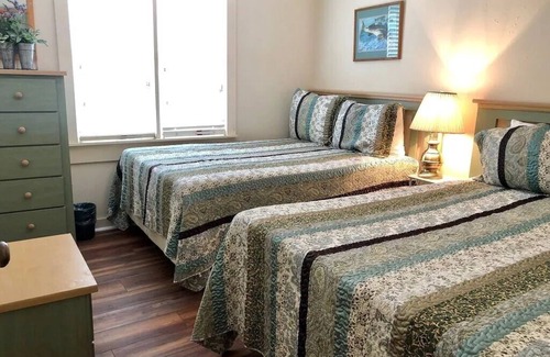 The River House is a two story house with a fully equipped unit upstairs as well as downstairs. The house sits directly on the river. River House B is the upstairs unit. It has 3 bedrooms and 2 bathrooms. The master bedroom has a king bed and bath. The second bedroom has a queen bed. The third bedroom has 2 full beds. There are also 2 rollaways in this home. No smoking. No pets. This cottage offers wireless internet.