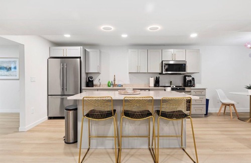 Deluxe guest suite in Shoreline, just 11 miles from Downtown Seattle's Space Needle and close to major hospitals. Enjoy the luxury of a fully equipped apartment w/ modern amenities, including stainless steel appliances, washer/dryer, a 65-inch smart TV & King Purple mattress. Lower-level guest suite features a chic kitchen island w/ gold hardware & custom tile bathroom. Ideal for business travelers or individuals relocating to the area.