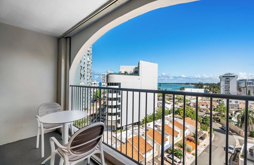 Enjoy beautiful ocean views from this 12th-floor studio, just 5 minutes from SJU Airport and steps from the beach. Fully equipped for your stay with 2 double beds, and kitchen. Self check-in anytime after 3 PM, one free parking spot, and access to paid laundry machines. Free luggage storage before check-in/after check-out. A 24/7 supermarket is 5 minutes away.