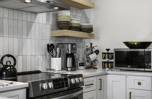 Kitchen with barstools (3) along with all the essentials (see list of provided supplies/appliances below)