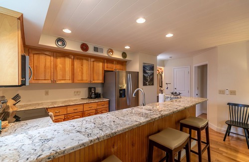 In the heart of Echota, walking distance to the indoor pool, fitness center, and clubhouse, this beautifully renovated 2-bedroom, 2-bathroom condo offers the perfect sanctuary to unwind and recharge on a quiet cul-de-sac. With a single-level, zero-step, ground-floor entry, this home was thoughtfully designed with accessibility and convenience in mind. Fully renovated in 2022, it strikes the perfect balance of modern amenities and rustic charm, featuring classic tongue-and-groove ceilings and carpeted wood floors throughout, in addition to the inspiring, year-round views of Grandfather Mountain, framed by mature trees.