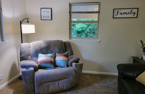 Our charming two-bedroom getaway is located in Collegedale. Nestled just a short 18-minute drive from the bustling Hamilton Place Mall and 20 minutes from the Tri-State Exhibition Center, this charming property offers the perfect home base for your Tennessee adventures. Unwind in the spacious living room, catch up on your favorite shows on the smart TV, or enjoy a home-cooked meal in the fully stocked kitchen, complete with a stove, oven, refrigerator, and all the necessary appliances and utensils. Refresh in the two bathrooms, equipped with towels and basic toiletries, and take advantage of the in-unit washer and dryer to keep your clothes fresh. Stay connected with the free WiFi, and let the kids explore the selection of books and games. With air conditioning, parking, and a safe, this vacation home has everything you need for a comfortable and carefree stay. Discover the nearby Tennessee Valley Railroad Museum and other local attractions during your visit. We can't wait to host you!