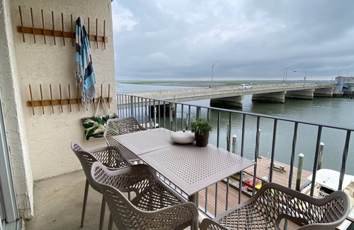 This renovated bayfront one bedroom condo is the perfect place to enjoy 180 degree sunset views, and all that Stone Harbor's quaint downtown area has to offer. A quiet setting but just steps away from shopping, restaurants, bars, the Reeds Hotel and the beach. All you need is a swimsuit and some sunblock you're set. There is a back patio which overlooks the bay and Stone Harbor bridge, as well as a dock for fishing. Mesmerizing sunsets! The condo is furnished with 3 beds (1 queen bed, 1 double bed + 1 twin bunk), a bathroom with Shower & bathtub, kitchen and living room with sofa. Cable and internet access (during the summer months) are provided. The property is equipped with central air and heat but you won't need it with the breeze. There is parking for your vehicle, although you'll likely spend all of your time walking. This is a quiet little community, perfect for relaxing. There is also an outdoor shower, perfect for rinsing off after the beach. Your stress free vacation awaits...