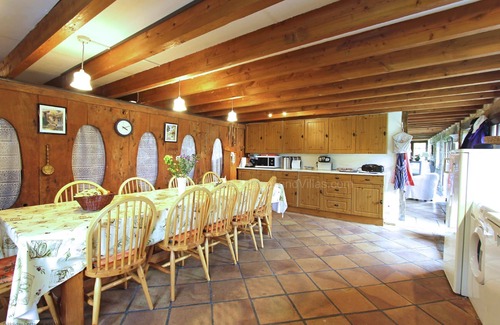 Kitchen: Fully equipped farmhouse-style kitchen with all of the amenities you could wish for including a dishwasher, washing machine, gas cooker, microwave oven, ironing facilities, two fridge freezers and a large farmhouse table that can accommodate all 12 guests. Double French doors open out onto the sun terrace with tables and chairs for al-fresco dining.