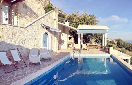 Beautiful stone Dalmatian villa is located on a gentle slope with a beautiful view of the sea and the island of Brac, only 3 km from the center of Jesenice. It offers carefree enjoyment of the peace and beauty of nature. Villa Dvori offers its guests private parking, free internet, air-conditioned accommodation and satellite TV. Pets are welcome at an additional cost upon arrival at the property. The villa offers a beautiful view of the sea and the island of Brac. Villa consists of two bedrooms with two double beds, a living room, a bathroom with a shower and a washing machine, and a fully equipped kitchen. A baby cot is available on request. In front of the house is a yard with an outdoor pool and deck chairs and umbrellas. It is a real pleasure to swim in the pool and watch the beautiful Adriatic Sea. The ideal opportunity to experience the vacation of your dreams in the peace and beauty of Dalmatia.
