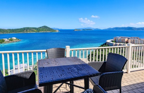 This villa has a large private wrap-around balcony where you can enjoy your early morning coffee or late afternoon drinks while enjoying breathtaking views of St. John, Tortola, Jost Van Dyke and our many cays and surrounding islands in what we call the "down island" view.