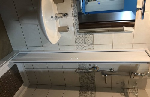 The property has free parking, kitchen, sofa, 2 single beds, kitchen, TV, bathroom with shower and sink, extendable table and chair.