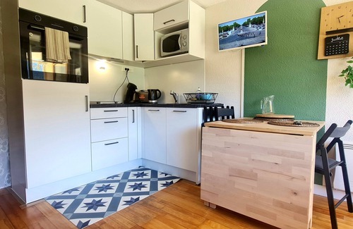 Cozy and functional 22 m2 apartment with lake view and Pic du Midi refurbished with modern decoration, 1 room. 5 people max. the +: balcony with view of the lake and the Pic du Midi, ski or bicycle cellar, collective parking, separate entrance. sleeping: 1 bz bench for 2 people, 1 mezzanine bed with 2 beds below and 1 place at the top. Equipped kitchen, bathroom with bath, wc, HD TV SHEETS AND TOWELS NOT PROVIDED