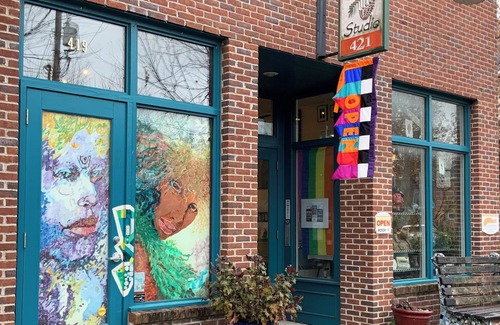 Experience Lower Town Paducah like a local in this comfortable studio with remote control long single beds framed as California King size bed and a murphy bed, perfect for a peaceful night's sleep for up to 3 adults. Enjoy the convenience of a hair dryer, massage handle, stocked bathroom cabinet and a refreshing shower. AC, iron, and WiFi through fiber optic cable. Washer dryer combo, 3 types of coffee makers and tea, blender, toaster and Oster oven (great for warming up leftover. Large mounted Smart AppleTV with Apple+, Netflix, Max, Disney+, Paramount+, Hulu , YouTube and PBS, Full kitchen, private entrance with adjacent koi pond and stream. Personal off-street parking. Private entrance and other door to Pinecone Gallery to browse anytime. 4 blocks from National Quilt Museum, 6 blocks to Downtown family restaurants and 3 other museums and Ohio Riverfront park. We look forward to hosting you at our Pinecone Retreat, No pets or smoking in studio allowed.