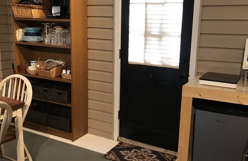 Studio apartment in the country: clean, safe and comfortable; open floor plan with private entrance; two beds (queen and full); private bathroom: plenty of storage; clean linen, towels, kitchenette with burner and small refrigerator; owners live in main house; perfect for college students, students completing their internships, travel nurses and outdoor enthusiasts. Pet lovers welcomed.