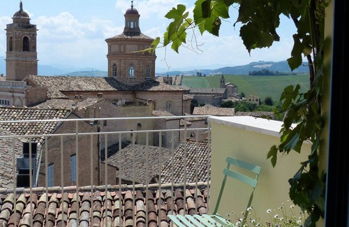 The apartment and its large terrace is located behind the Palace and the Theatre: the tower and the steeples of the six churches in the historic town centre measure up to the beautiful landscape, which has different colours in each season. The studio apartment is at the fourth floor of an old building. The breath-taking terrace is the true marvel of the apartment: here you are above the roofs, you can dominate the old city and embrace a panorama that includes the wonderful Marche countryside to the mountains of the Marche and Abruzzo, here you can soak up the sun in complete privacy and have breakfast watching Santa Maria della Rocca or dinner at sunset, while the first lights of the Piazza del Popolo turn on. The apartment has recently been renovated using carefully chosen materials, finishes and quality furniture; you can find privacy, comfort, quality and attention to detail.