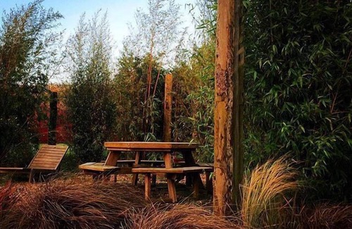 Our garden is wonderful for relaxing in and we would love you to enjoy it too with tables and chairs dotted amongst the trees. A cosy fire pit with giant bean bags and firewood is available on the nicer evenings....just let us know. There is a also a lovely al fresco dining area and we have swings, trampoline and a slide for the kids to enjoy as well.