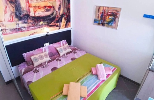 Studio apartment with a double bed or two single beds, a fold-out sofa bed. Kitchenette with everything you need for a comfortable stay: washing machine, dishwasher, refrigerator, microwave oven, kettle, toaster, etc. The apartment has a large TV and a nice Wifi. The spacious balcony offers magnificent views of Costa Adeje, the ocean and the neighboring island of La Gomera.