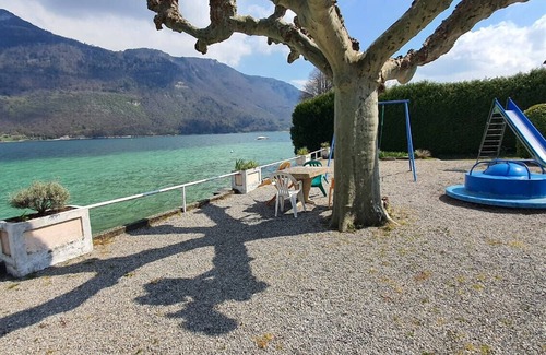 Welcome to our 30m2 studio located in Doussard, on the edge of the magnificent Lake Annecy. Nestled on the 1st floor of a pleasant building, this accommodation offers easy access via a digital code.The studio includes an equipped kitchen area, including a dishwasher, hob, hood, oven, refrigerator and necessary crockery. The living room has a TV, a sofa bed and a small sideboard with chairs.The sleeping area is designed to ensure a good night's sleep, and the bathroom has a shower to refresh you after a busy day.Enjoy a private terrace.The residence provides storage for your bicycles, free parking for your vehicle, and a private beach where you can relax by the water. For those who enjoy cycling, access to the cycle path that circles the lake is nearby, providing a picturesque way to explore the surrounding area.The accommodation ensures you have a worry-free stay. Indeed, sheets, towels but also shower gel, shampoo, toilet paper, dishwashing liquid, dishwasher tablet, tea, coffee, salt and pepper are provided.Pleased to welcome you !