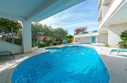 Yes, this Brela apartment has a swimming pool. Check the Facility Overview section for details about the pool and other available facilities.
