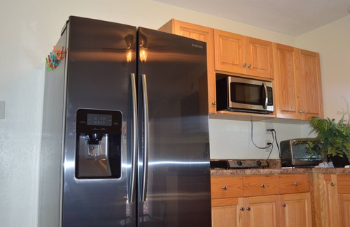 This is not a one bedroom apartment with a separate bedroom but a small studio with a pantry kitchen and a queen size bed. Pantry kitchen features a countertop stove with 2 burners, a Keurig capsule coffee machine, microwave, mini oven and an espresso machine. Keep in mind that this is not a full kitchen and not suitable for large meals. Appliances can only be used individually since they are on a single 20 amp breaker. Small 110 volt washer-dryer combo in the bathroom. This machine is for small loads only. Dryer takes more time than a regular 220 volt model. This machine is a little bit noisy. Quiet Samsung refrigerator with icemaker. This place is very quiet, safe and private. High speed internet. TV with local channels. No cable TV but there is a Voice controlled Roku Express+ which gives you access to Netflix. Not suitable for pets. Since some guests are allergic to animal hair, we don’t make exceptions.