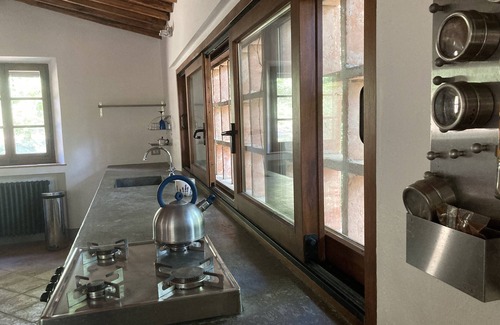 Restored from the ruin of a typical Tuscan farmhouse, Podere Scopeto sits high on a hilltop at 600 meter above sea-level (which means summer nights are just perfect outside). The Main House of Podere Scopeto sleeps 10 and the Studio (called the Cappana) is about 60 m away and sleeps 2. The Main House and the Cappana can be rented seperately or together, for a total of 12 guests.