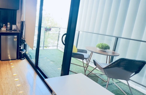 This studio apartment is conveniently located near Canberra's CBD and offers a range of amenities, including free secure private parking. The apartment features a cozy queen-sized bed, a modern bathroom, a kitchenette, free Wi-Fi, a swimming pool, and a smart TV and it's just a 2-minute walk from a train station. This peaceful retreat is ideal for solo travelers, couples, or corporate workers looking for a comfortable place to relax after work or work from home.