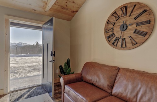 One of eleven luxury suites at the Lodge by Sunapee Stays, nestled in Sunapee with spectacular views of Mount Sunapee just out your front door. This modern rustic studio suite features hickory log furniture throughout, king bed and full size memory foam sofa bed. The kitchenette is fully stocked with all the amenities to eat in. The bathroom boasts a sanctuary of its own with pebble stone shower surrounded by subway tiles and your very own bidet toilet! The shiplap vaulted ceilings and plush Adirondack style furnishings evoke relaxation after your day of adventures. Common washer and dryer located on property. Later this winter, the Lodge will offer a common indoor lounge area featuring contemporary and classic family games along with a TV. Outside you'll find a semi-private patio complete with rocking chairs and a seasonal outdoor pool with views of Mount Sunapee!
