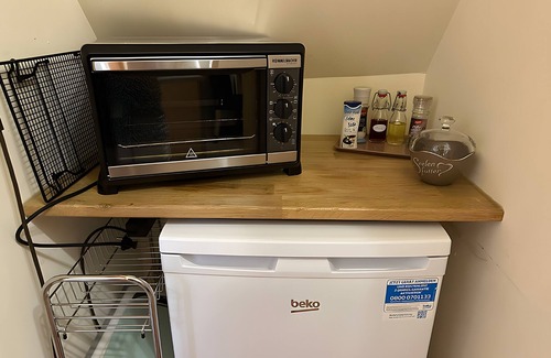 Welcome to your small yet charming, dog-friendly and well-equipped studio holiday apartment in the attic. You have a kitchenette with modern appliances for daily needs, including a dishwasher, coffee machine, kettle, and fridge with freezer compartment. A dining table, satellite TV and a high-quality box-spring bed provide comfort. The spacious daylight bathroom is equipped with a washbasin, hairdryer, shower, toilet and an infrared sauna, which invites you to relax after a hike. For your dogs, a dog bed, bowls and towels are provided.