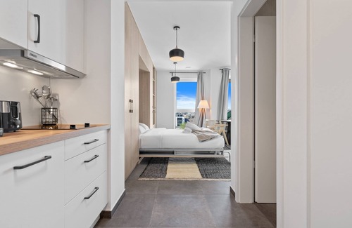 - Charming 35m² studio with queen bed, fully equipped kitchen, and modern bathroom