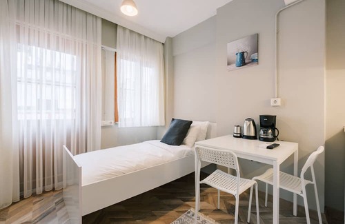 Experience the charm of Bakirkoy with our exquisite studio flat, boasting a stunning sea view balcony. Perfectly curated for short-term stays and vacation rentals in Istanbul, Hylas blends comfort with luxury. Wake up to breathtaking sea vistas and enjoy your morning coffee on the balcony. Located in the heart of Bakirkoy, our flat is an ideal base for exploring the vibrant local culture and attractions. Book now for a memorable stay in a picturesque setting by the sea!