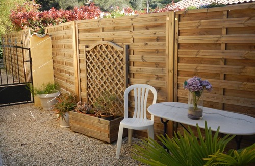 Beautiful quiet and bright studio, air-conditioned, on one level at 5 minutes from the beach (Cagnes / sea), central between Nice and Cannes but preserved from their agitations (exit Cagnes / sea in green zone of Saint-Paul-de-Vence ), ideal for 2 travelers (plus extra bed for child), fully equipped (25m² new from 2018) with its private pool dedicated only to the studio (occasional access of the owner only in the absence of the traveler) decorated with a large sunny terrace dedicated all comfort (barbecue, hammock, sunbed, umbrella, pool-house ...), with a dominant view of a wooded valley in the heart of a terraced orchard, ideally located among the classified medieval sites of the French Riviera.