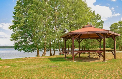 Here you are located directly at the beautiful lake Jezioro Dominikowo, which offers you a sandy beach and bathing jetty, thus you can ideally swim and fish here. In addition, there is also a boat rental, which means that you can also paddle on the lake. Nearby is also the Drawa National Park, where you can listen to the birds while hiking or go kayaking on one of the rivers, Korytnica or Drawa Kayak. Also take advantage of the forest area that surrounds the lake to go cycling or jogging a lap in beautiful nature.