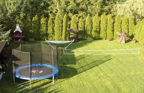 The surrounding area invites you to go for walks - forests full of mushrooms and picturesque lakes are close by. You can also take a trip to Koscierzyna - the only town in Europe with two sanctuaries. The area offers many places worth seeing: Koscierzyna with the railway museum, the botanical garden in Goubiu or the ethnographic museum and observation tower in Wdzydze Kiszewskie. A visit to Gdansk, a walk on the longest wooden pier in Europe in Sopot or a shopping spree in modernist Gdynia are unforgettable experiences.