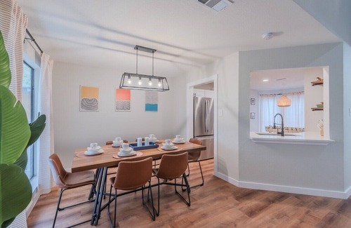 This beautiful & spacious home is located in an exclusive upscale, quiet neighborhood. It can fit up to 10 people including families with kids. It is fully equipped and there's also a pool table to play while at home. The backyard is a true gem featuring a stunning deck with hot-tub overlooking the beauty golf course and the lake, BBQ and comfortable covered patio with lots of space to hang out. Close to restaurants, bars & shopping.