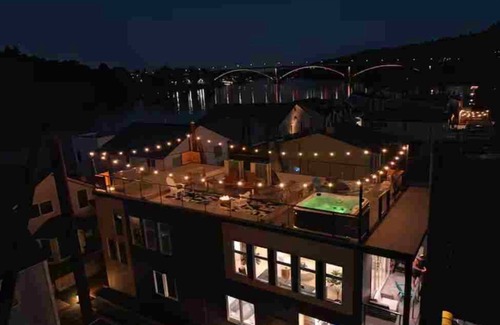 Guests have shared use with the sister unit of the rooftop deck, accessible by stairway and roof hatch. Each unit has an individual access hatch. Your rental includes s use of the hot tub deck furniture, BBQ Grill, lounge chairs, and gas fire pit. Rooftop deck is reservable for private events by either unit. Unless reserved in advance, rooftop is shared between the units.