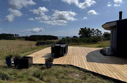 On the beautiful peninsula, Helgenæs, this very special holiday home, with the most fantastic views over both green areas and the sea - from the terrace and also from the living room which has large panoramic windows, is located. You may bring a pet with you on holiday.