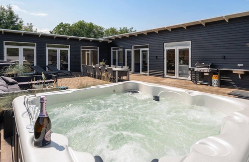 A vacation home with a beautiful spa. Enjoy an outdoor hot tub and infrared sauna. It is located in the beautiful area of Sandersvig Strand with beautiful nature just outside the. The cottage is brightly decorated and has five bedrooms. In the large activity room you can spend many entertaining hours playing table tennis, table soccer and billiards. A spacious living room, which is in open connection with the kitchen and dining area, offers plenty of space for socializing. There are also two bathrooms, one of which houses the infrared sauna. Relax in the outdoor hot tub, a wellness opportunity you can use all year round. The house is furnished to a high standard with comfortable furniture. Outside, a large terrace with garden furniture and sun loungers awaits you.