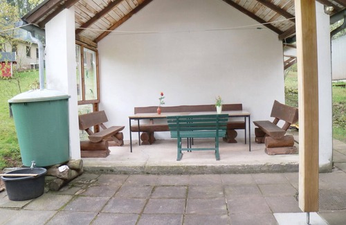 Comfortable and spacious cottage in small vacation complex, quiet location, directly on the forest railroad. Large fenced plot with trees and green space. Child friendly with playground equipment and plenty of space to romp. Cozy covered seating and barbecue area. An outdoor swimming pool and the guesthouse "Zum Waldbad" is about 200 m away. Plenty of hiking and biking trails can be found on site. Other tourist attractions in the area are:
