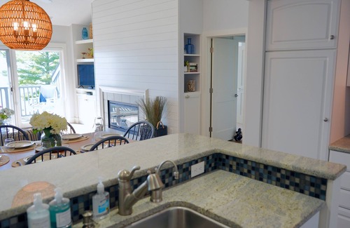 The Homestead Resort holds a most special place in our hearts, with five generations of our family creating cherished memories on these shores of Lake Michigan; we are so happy to share this experience with you! Your dream beachfront vacation begins just steps away with our newly-remodeled airy, bright, comfy, and immaculate condo. One glance off your private, waterfront deck and you’ll know why GMA viewers voted the Sleeping Bear Dunes National Lakeshore the “Most Beautiful Place in America,” and after just one epic, sky-on-fire sunset, you’ll find yourself planning your return.