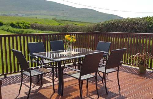 Next to a beautiful, secluded sandy beach and very close to Dingle. This spacious and beautifully furnished, new 2500 sq ft luxury, five-star, six-bedroom house, offers you dramatic views of Dingle Bay, the Atlantic Ocean and Mountains. Situated on The Wild Atlantic Way, this gorgeous house boasts a large lawned garden with a great deck where you can enjoy the sea and mountain views as you barbeque or just relax with a coffee or glass of wine.