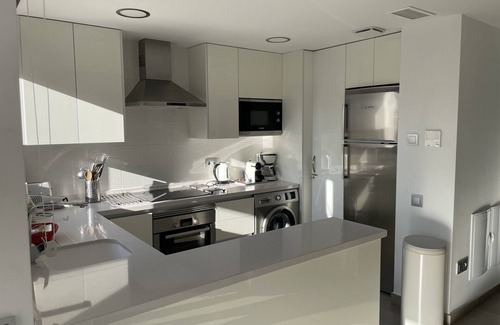 The kitchen is fully equipped with dishwasher, hob, oven, microwave, fridge, fridge