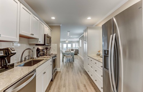 With three beautifully appointed bedrooms, including a luxurious king suite, a cozy queen room, and a versatile twin room that can be combined to create a king, this home comfortably accommodates up to six guests. Each bedroom is designed to provide a restful atmosphere, ensuring a rejuvenating stay.