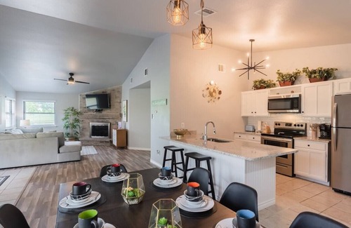 This beautiful & spacious single-story 4 bdrm home is located in an exclusive upscale, quiet neighborhood. It can fit up to 12 people including families with kids. It is fully equipped, TV with cables, WIFI and washer & dryer and a Pool Table. The backyard is a true gem featuring a stunning in ground pool overlooking the beauty golf course with no rear neighbors, BBQ and comfortable covered patio with lots of space to hang out. Close to restaurants, bars & shopping.