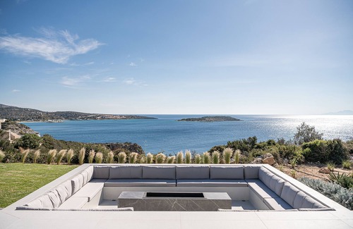 Designed to blend into the characteristic landscape of the island - an area of outstanding natural beauty- Searenity Villa offers unobstructed views of the sparkling Cretan Sea giving visitors a sense of balance with nature. The design thinking behind the construction of this unique dwelling came from the geographical location and the surroundings, combined with a minimalistic luxury that inspires you to live in the present. Elegance, comfort and functionality is what we wish to offer to the modern traveller and care and attention was paid to every detail in the process of creating this holiday haven. The interior space is furnished with handpicked pieces and creates a homely feeling, while the spacious rooms are filled with natural light and enjoy the stunning vistas. The 310m2 property spreads in 2 levels and can comfortably accommodate 10 guests in its 5 en-suite bedrooms.