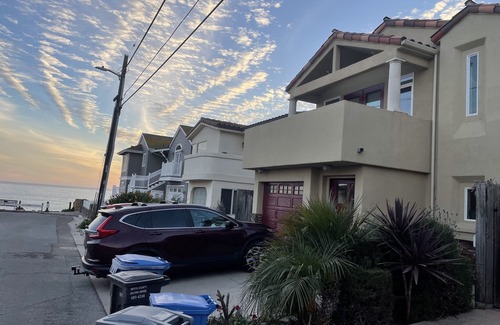 Last Minute Special! A late cancellation means an additional 10% off for your stay in October! Amazing ocean views from this executive beach getaway, just 2 doors from the cliffs overlooking the Pacific! Book the entire month for the price of a couple weeks at an STR (& ask about seasonal specials!) Savor morning coffee on the deck, walks on the beach, surfing, swimming, kayaking (we supply 3 for your use), hiking, wine tasting, whale watching, great local restaurants, shopping, etc or just relax on the balcony or rooftop deck and take in the views! You'll spot pelicans, sea otters, seals, dolphins, whales (depending on the season) and much more from the balcony and rooftop decks! The second floor master suite offers a generous work/office area, complete with large desk, laser printer, and high-speed internet. Working inside or out in the beautiful weather. The ample balcony deck and rooftop decks provide tables and chairs to enjoy some morning coffee or an evening cocktail with friends, or just to work on the laptop, while taking in the water views. In the master bedroom sleeping area, there's a plush Cal King bed. The suite also includes a fold-out sofa sleeper for extra guests. Next to the suite, a large master bathroom with walk-in shower offers privacy and space. A short flight of stairs leads to the rooftop deck where the views of the ocean and surrounding hills only gets better! You'll not be disappointed! :) The ground floor boasts a stylish family room with large flatscreen TV, dining area, a full bath with soaking tub, a well-appointed kitchen and a spacious guest bedroom with seating area, dresser, and queen bed. You'll love the accommodations, but even more, you'll wonder at the beauty of the location--every time you step out the door! This is a monthly rental--but compare prices to short term rentals in the area and you'll see why a month at this price is a steal! Call for special seasonal discounts!