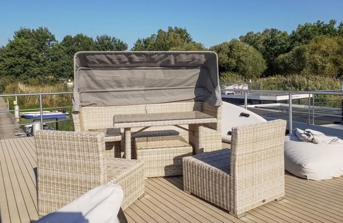 Enjoy this magnificent houseboat, a floating home with a roof terrace on Lake Havel.