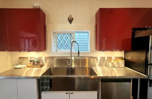 Stylish and perfect for guests looking for an authentic & unique Vancouver experience. Located in a 1912 heritage home with plenty of natural light, wood floors, high ceilings, exposed brick, industrial-style kitchen, and marble bathroom floors. Enjoy dinner at home, a beverage on your private back deck or nestle in after a long day. Steps from all Commercial Dr. culture offering great coffee/food, local pubs, shopping and Trout Lake; very central to all Metro Vancouver, 2 blocks from transit.